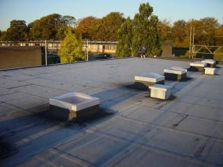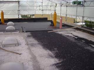 En analyse af taget på BLÅ 51-54 viste i 2008, at over halvdelen af taget var totalt fugtigt. Der var enighed om, at den bedste løsning var et komplet nyt tagdæk oven på den rå beton. Lige efter sommer 2009 blev det gamle tag fjernet helt ned til den rå beton og et nyt lag isolering og tagpak m.m. blev lagt ovenpå det udtørrede betondæk. Det opstillede stillads havde overdækning, som tillod et hurtigere arbejdstempo, men især at det våde betondæk kunne blive tørret ud.