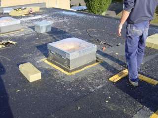 Her er en billedserie, som viser aftagning af gammelt tag og lægning af det ny. Isoleringen er forøget fra de 90 mm til 250 mm, hvilket opfylder dagens krav til isolering.