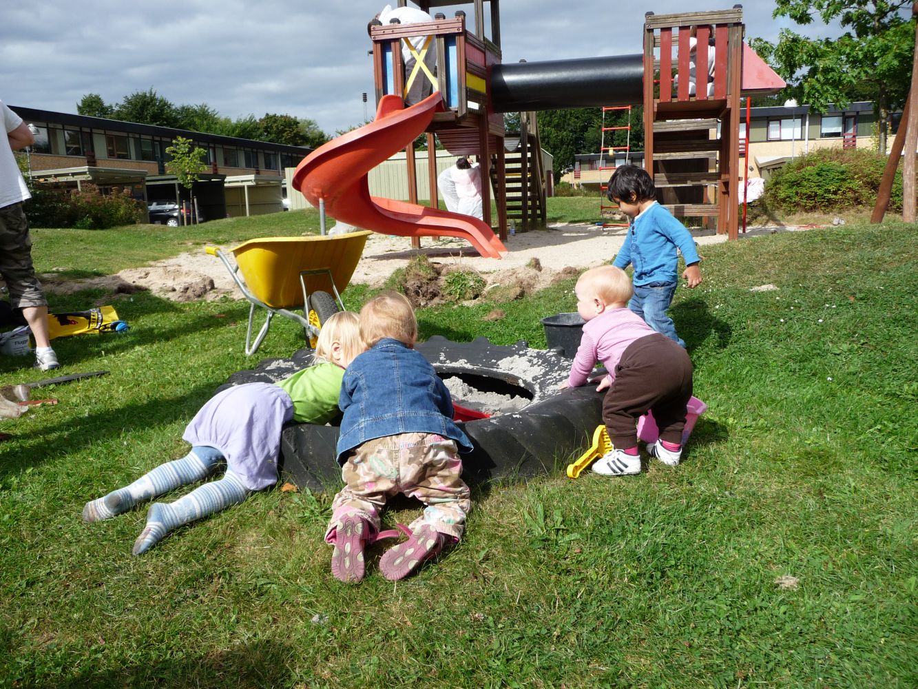 Tirsdag færdiggøres arbejder på den lille legeplads med udgravning til underlag og babygynge. Faldunderlagsand placeres herefter forhåbentlig onsdag sammen med det øvrige sand på den store legeplads.