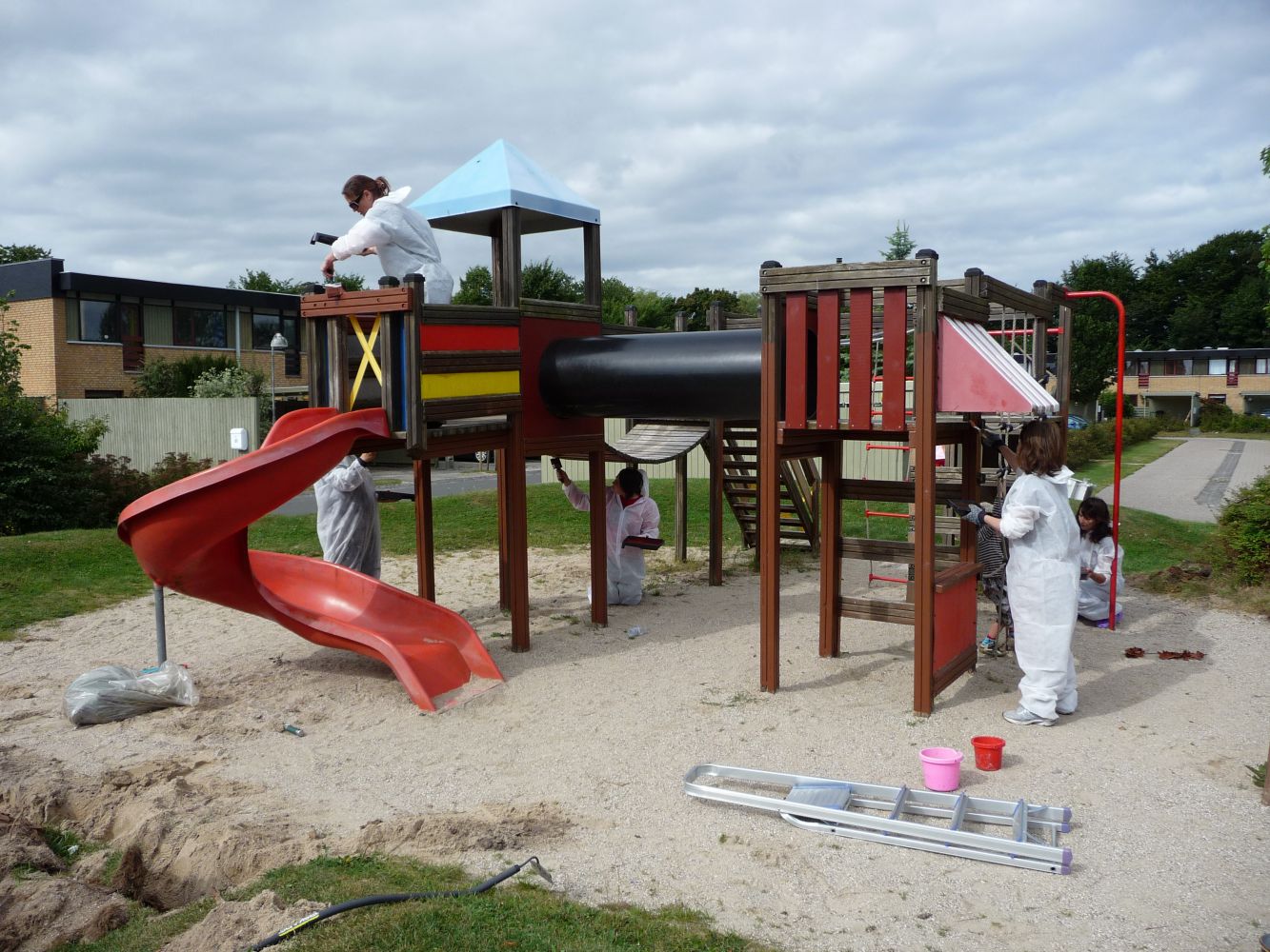 Beboere opfordres til at hjælpe børnene med passe på tøjet, hvor redskaber er nymalede, samt til at respektere afspærringer af arbejdsområder.