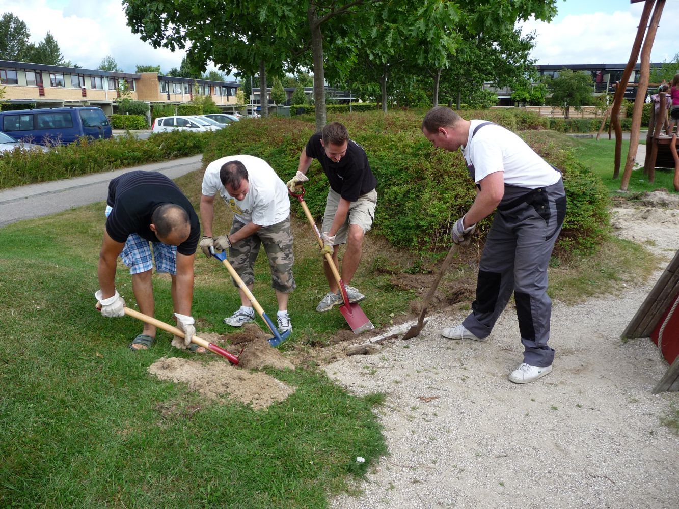 Søndag den 23. august kl. 10 - 15 mødes vi på den store legeplads til en fælles arbejdsdag på vores to legepladser. Vi håber, at så mange som mulig har lyst til at være med til at forbedre vores fælles arealer.